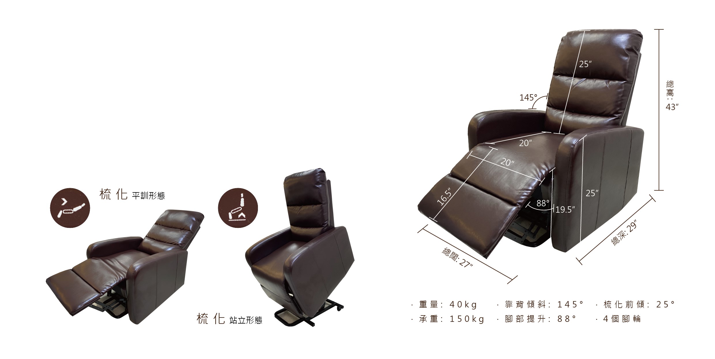 可升降電動椅(小型)棕色/米色
