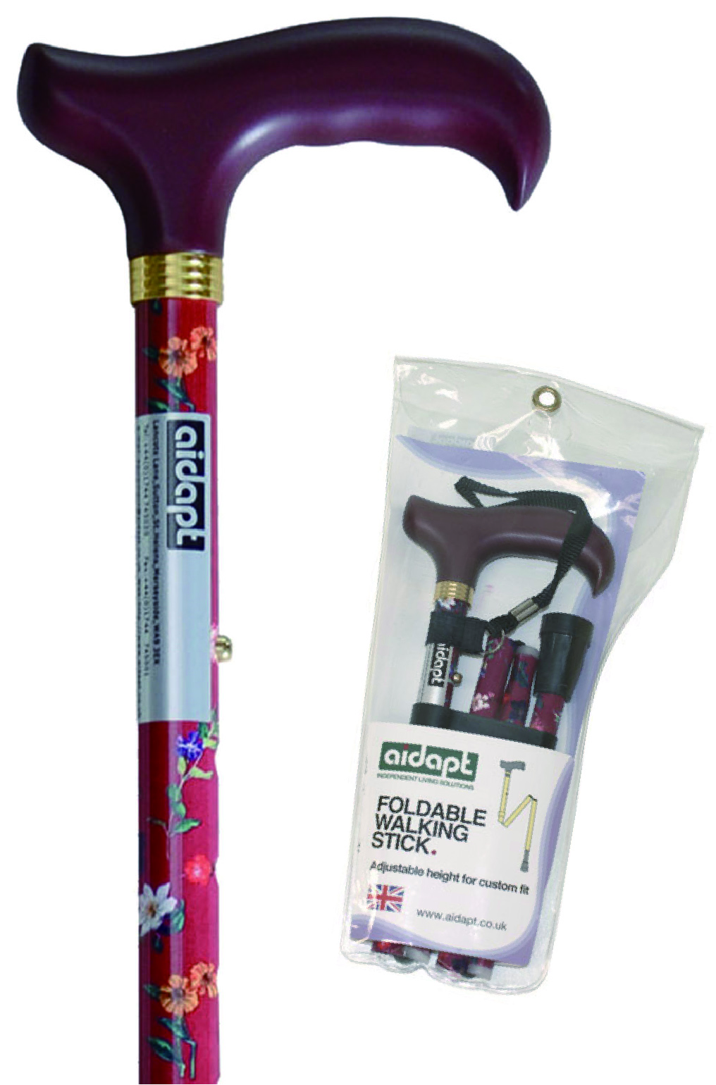 Aidapt Mini Folding Walking Stick (Solid color handle)