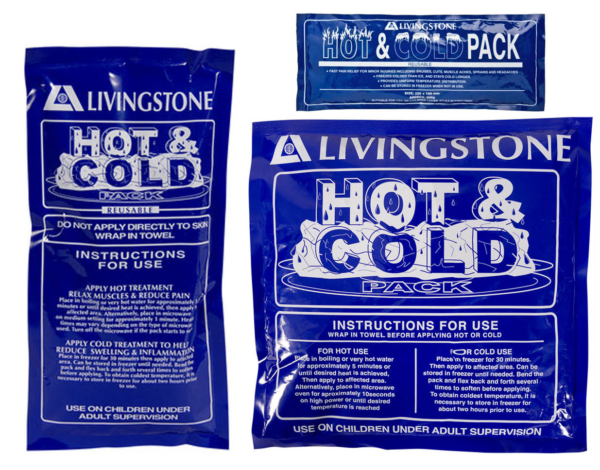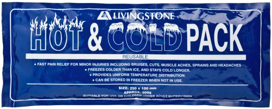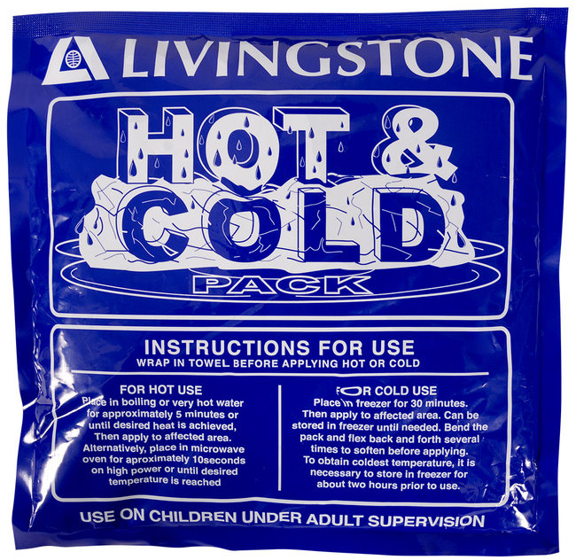 - Livingstone Hot and Cold Pack relieves pain and swelling of minor injuries, bruises, cuts, muscle aches and strains plus sprains and headaches.