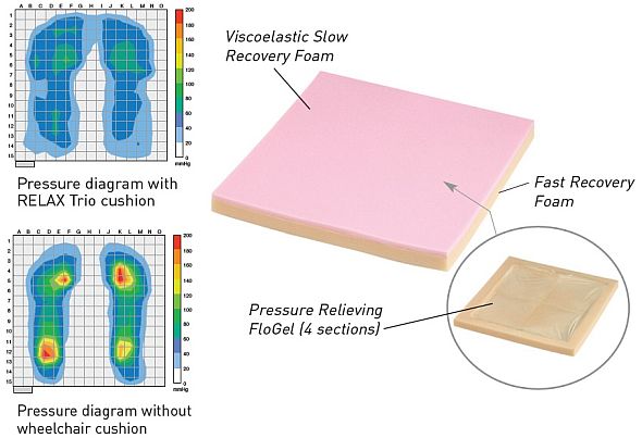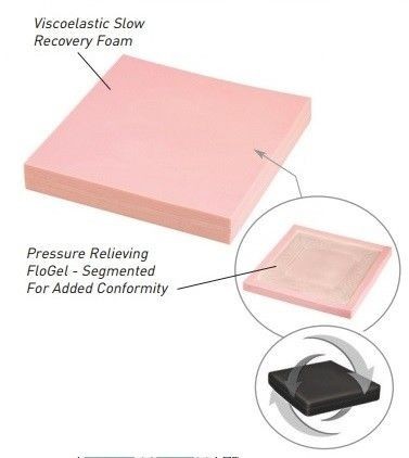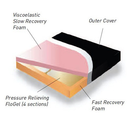 - Cushion consists of a FloGel centre with a Fast Recovery Foam base and a Viscoelastic Slow Recovery Foam upper layer