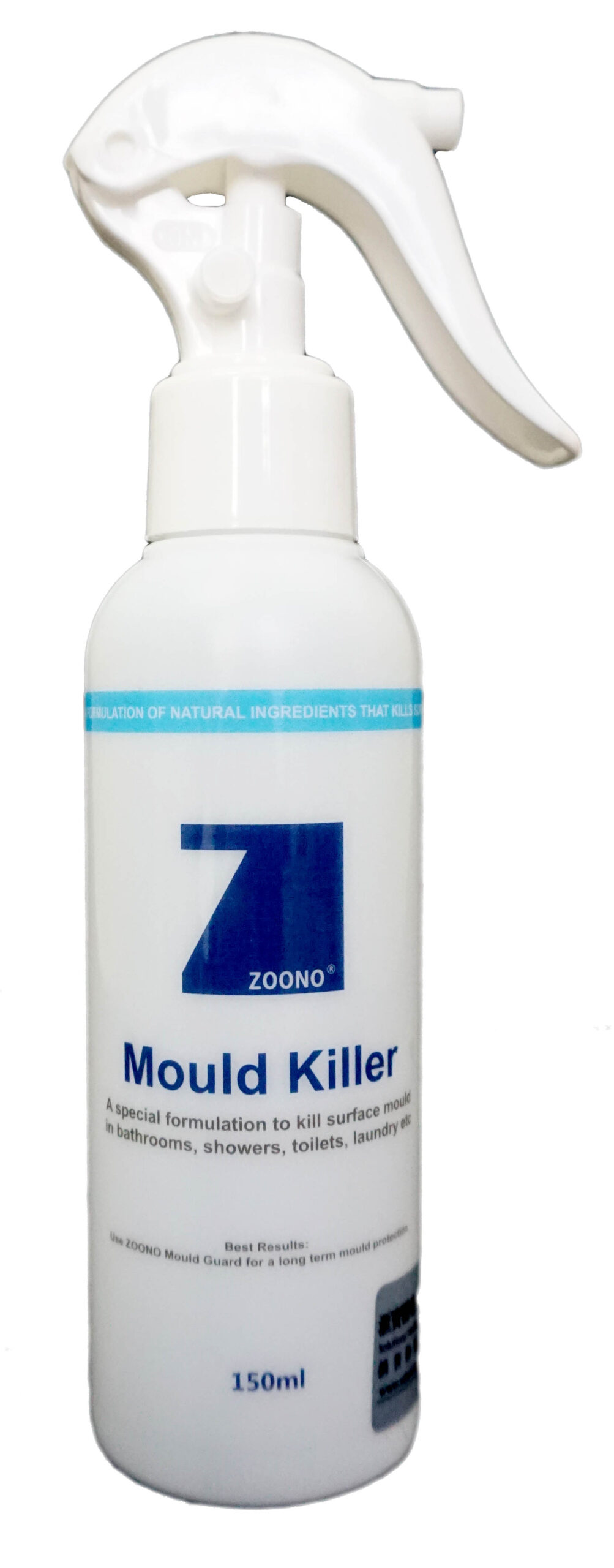 - Zoono Mould Killer is a formulation of natural ingredients that does not bleach the area to make seem like the appear mould has gone, but actually kills surface mould in situ. Zoono Mould Killer is suitable for use in kitchens bathrooms, spas, saunas, showers, HWC’s etc – any location where surface mould os visible. Zoono Mould Killer works best on hand surfaces such as shower wall linings, ceramic tiles, finished plaster, laminates, finished concrete etc.